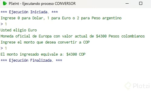 Una vez seleccionada la moneda de conversión, es vital solicitar el monto específico al usuario. Aquí se emplea otra variable denominada monto usuario. Se le indica al usuario explícitamente que el monto solicitado se refiere a pesos colombianos.