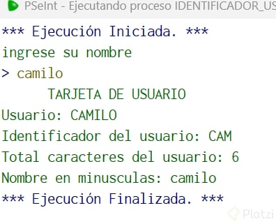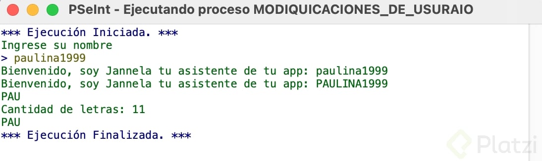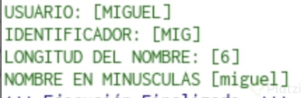 mayúsculas(nombreDelUsuario)para almacenar el resultado.