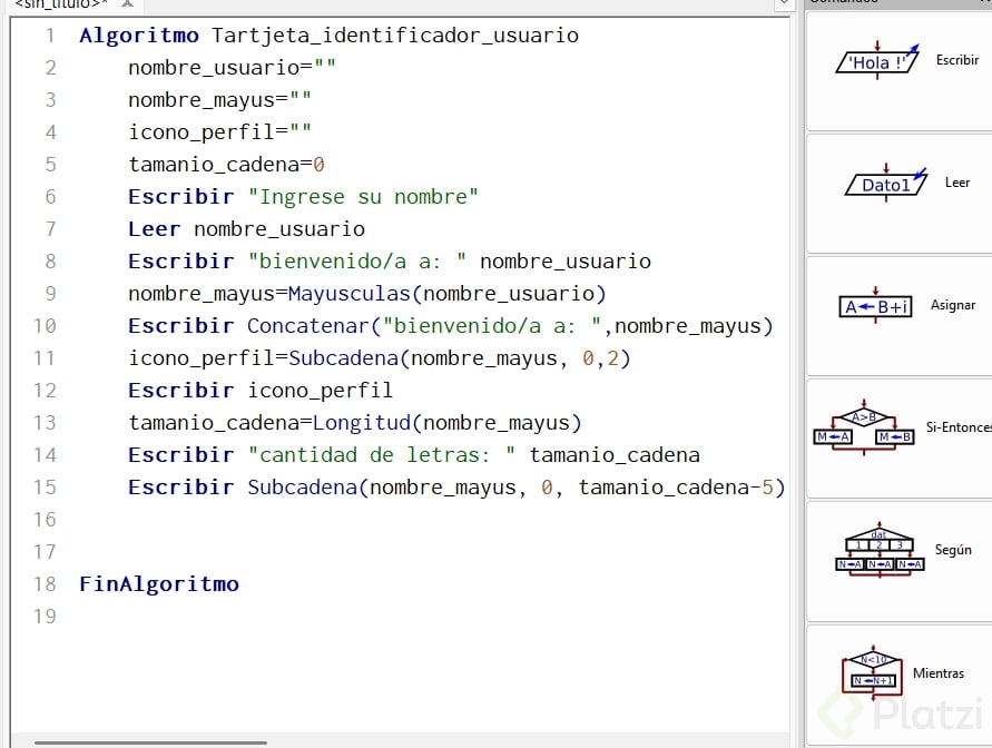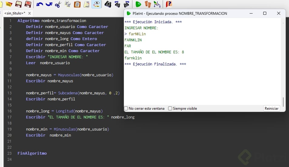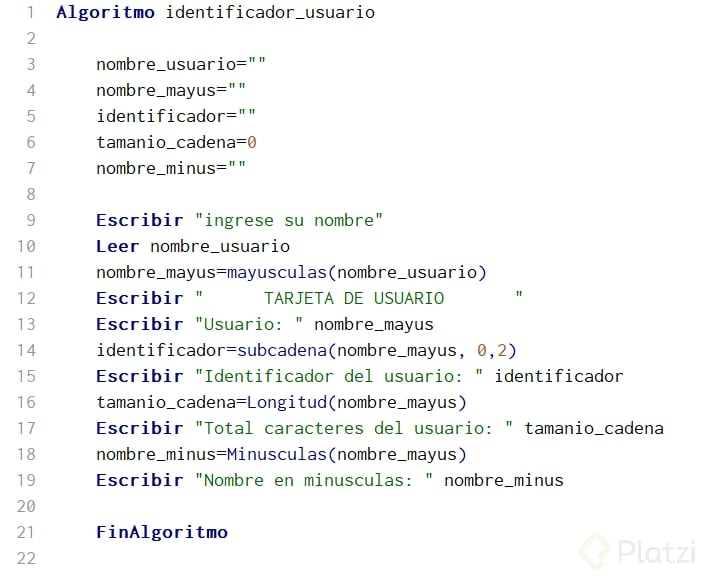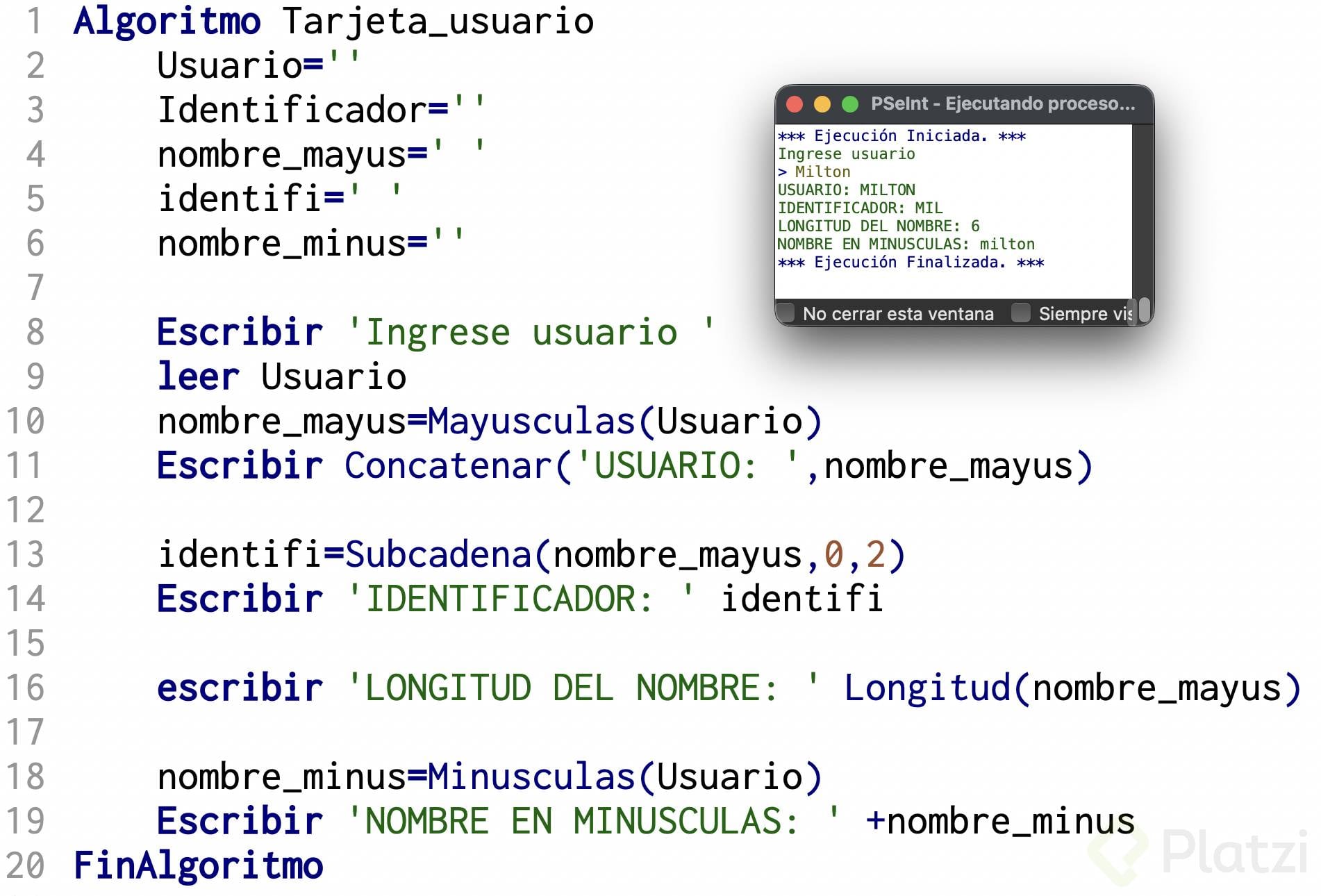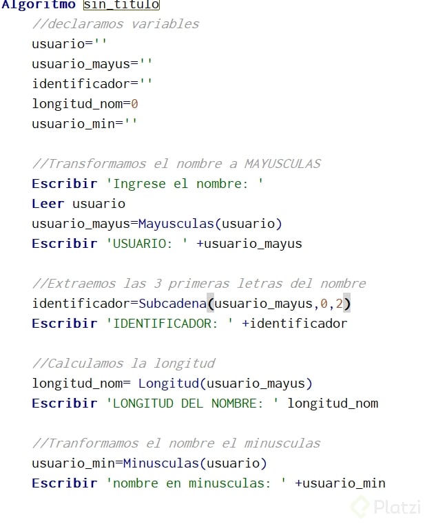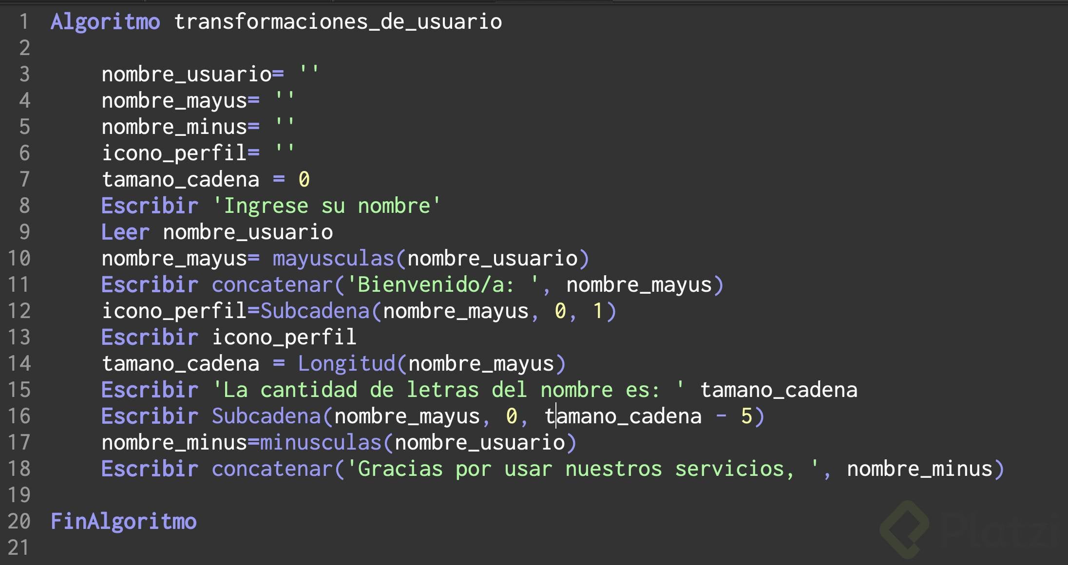 Transformaciones de texto con funciones de cadena en pseudocódigo