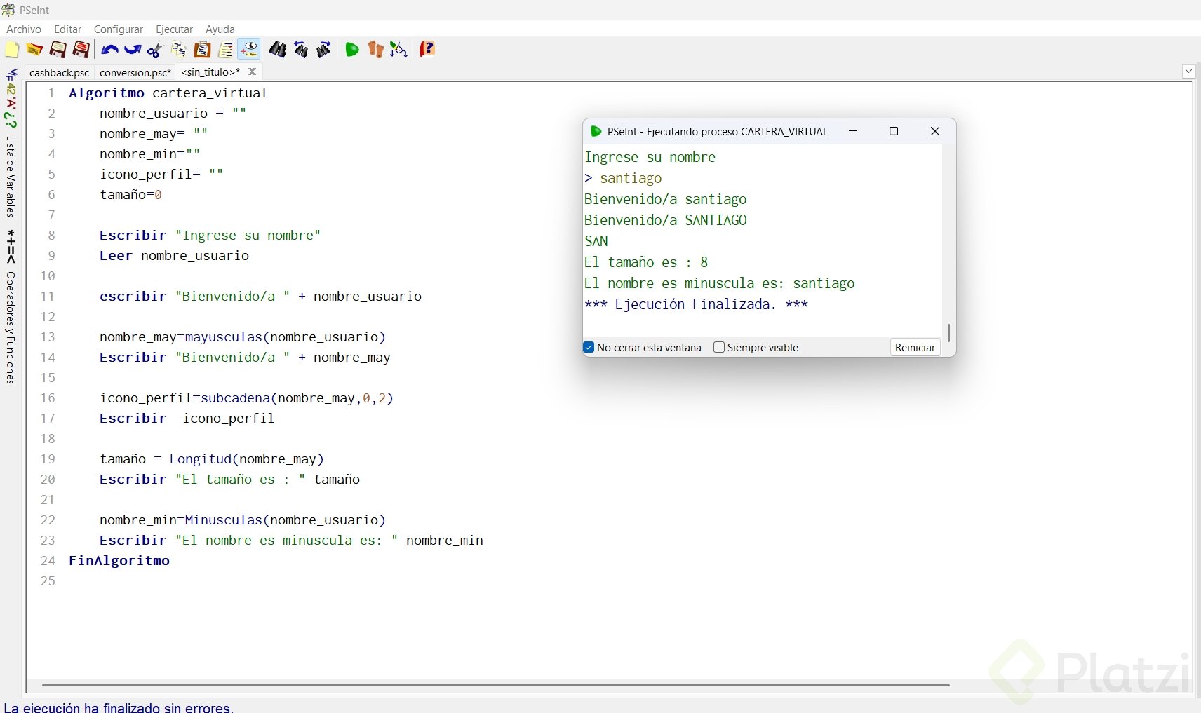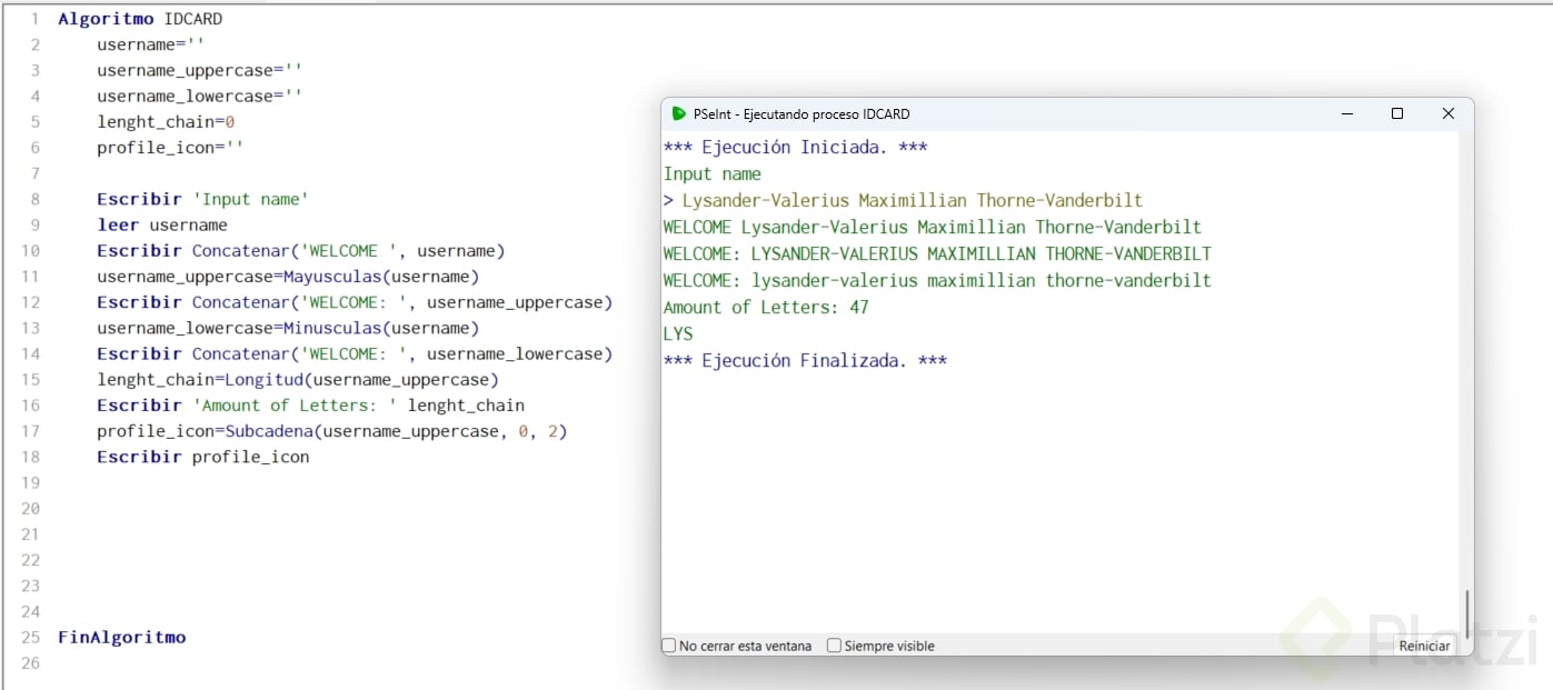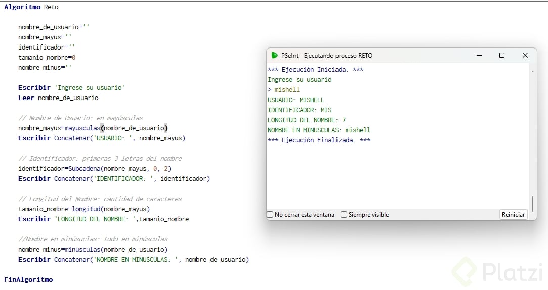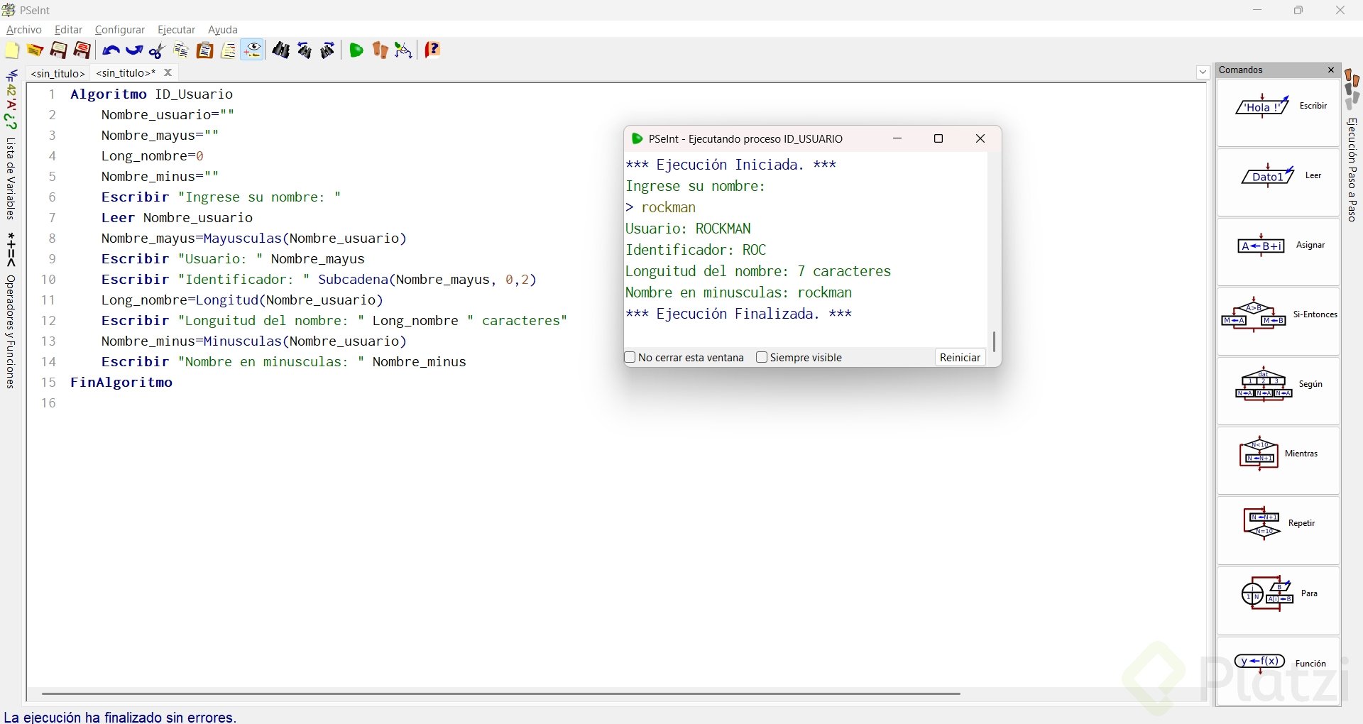 Transformaciones de texto con funciones de cadena en pseudocódigo