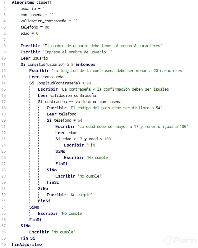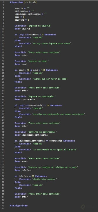Si longitud(usuario) >= 8 Entonces