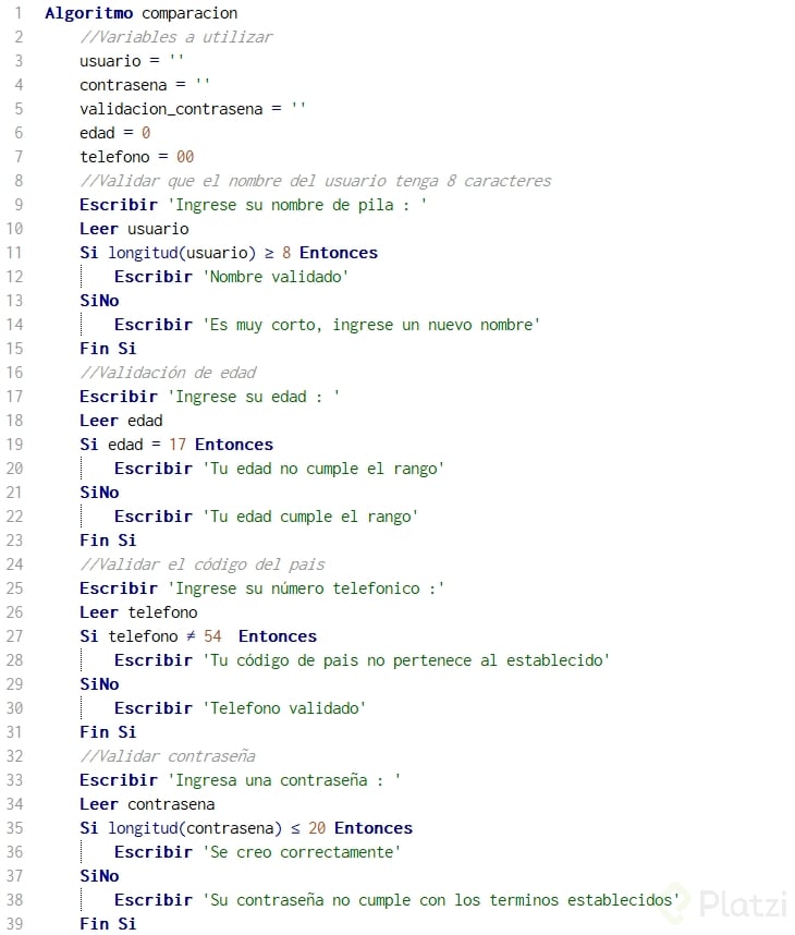 Validación de datos de usuario con operadores de comparación