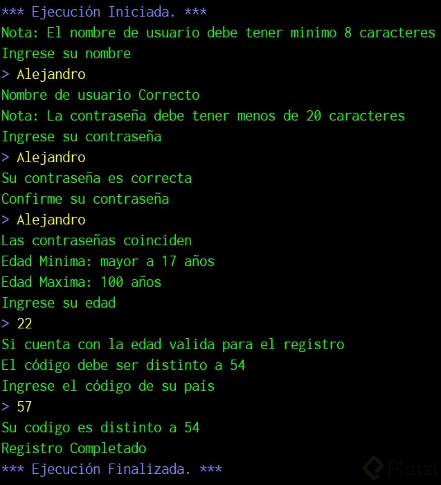 Si el resultado es verdadero, el registro está correcto. Si es falso, se debe informar y solicitar un nuevo ingreso.