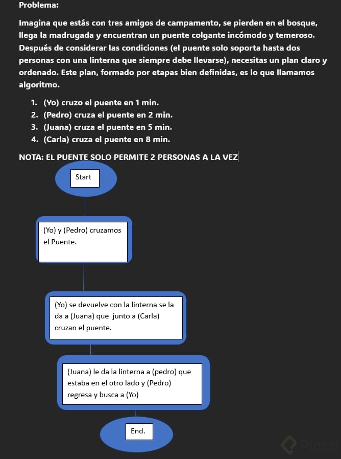 - La operación se repite con el resto del grupo hasta que todos cruzan.