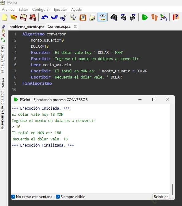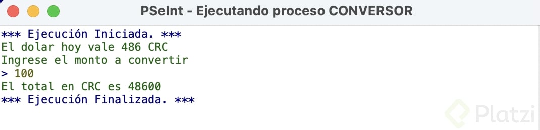 Escribir "El dólar vale hoy", DOLAR conversion = monto_usuario * DOLAR