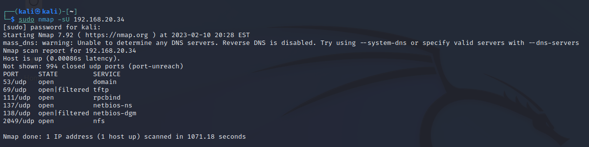 Recuerda que en UDP debes especificar el rango de puertos que quieres usar, de otra forma va a tardar mucho la comprobación.