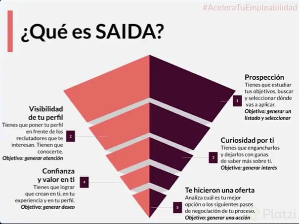 La búsqueda de empleo, un proceso que puede parecer arduo y desalentador, puede transformarse en un enfoque de ventas estructurado y efectivo. Inspirado en el modelo de ventas de 1898, AIDA, el modelo SAIDA es una herramienta útil para maximizar tu empleabilidad. SAIDA se compone de cinco fases críticas: Selección, Atención, Interés, Deseo y Acción. Cada fase está diseñada para llevarte desde la identificación de empresas hasta el logro de una oferta laboral.