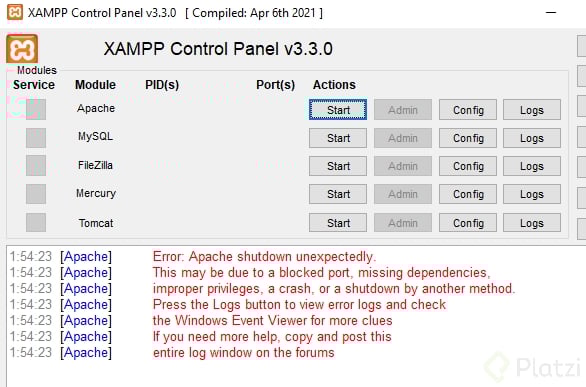 - Si te aparece el módulo Apache con fondo verde significa que ya tienes a Apache ejecutándose: