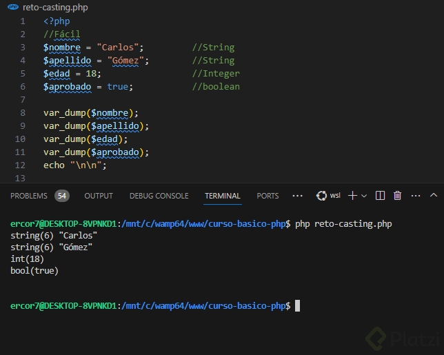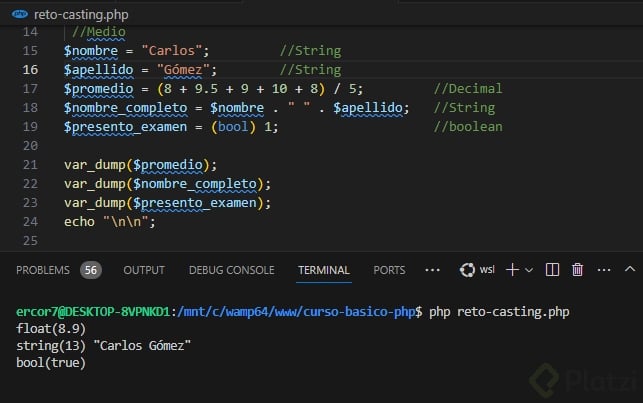 Revisaremos el reto de la clase Qué es el Casting en PHP. Estaba dividido en 3 niveles y constaba en determinar los tipos de datos de una lista de variables.