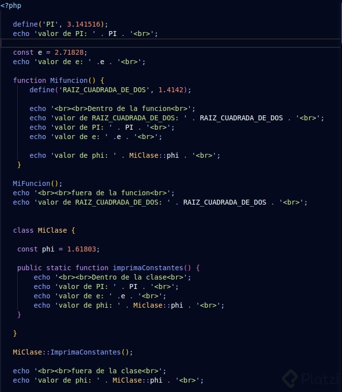 Para definir constantes en PHP normalmente se hace de la siguiente manera: