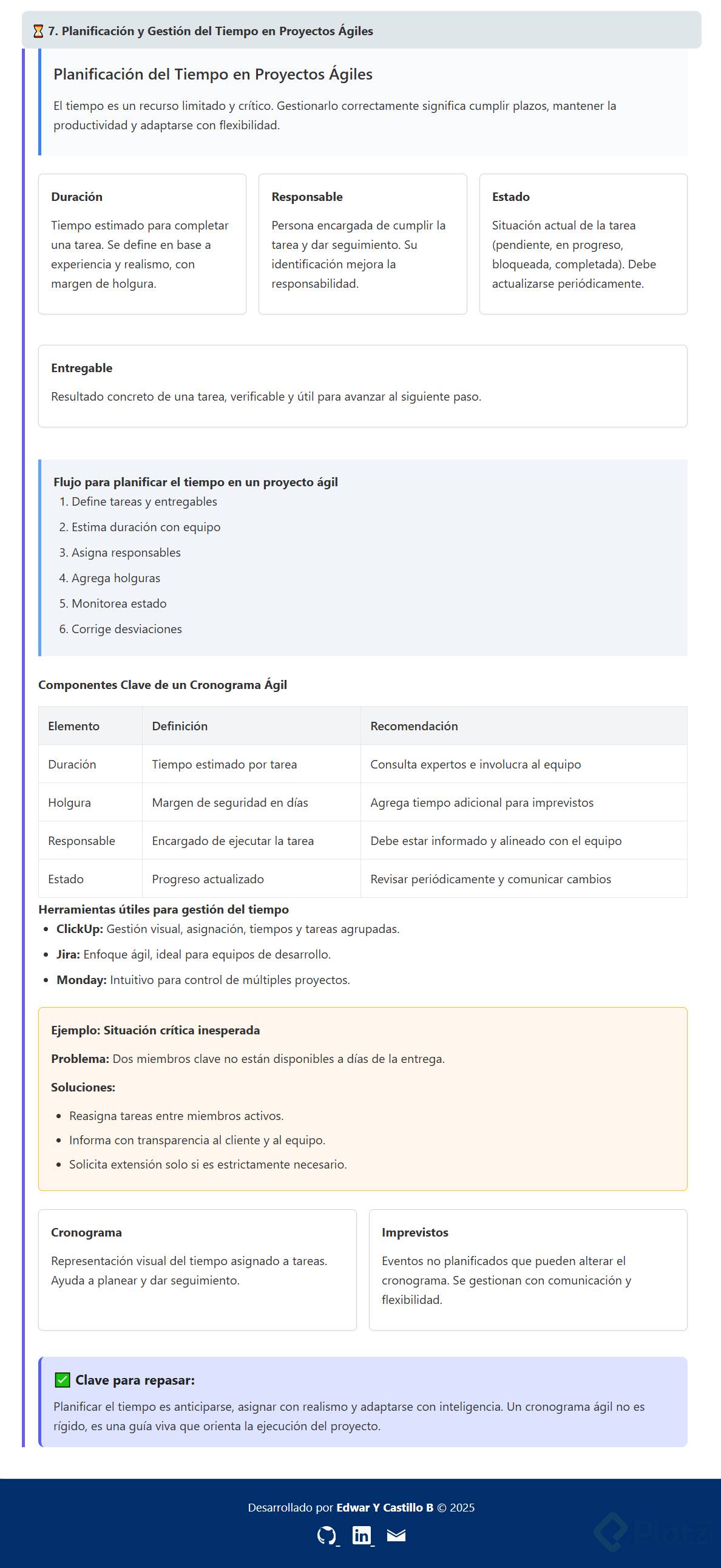 Planificación y Gestión del Tiempo en Proyectos Ágiles