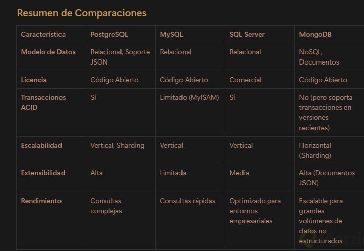 Diferencias entre PostgreSQL y otros gestores de bases de datos