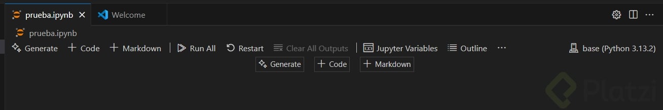 - Posteriormente, configura tu Kernel de Python instalando ipykernel: