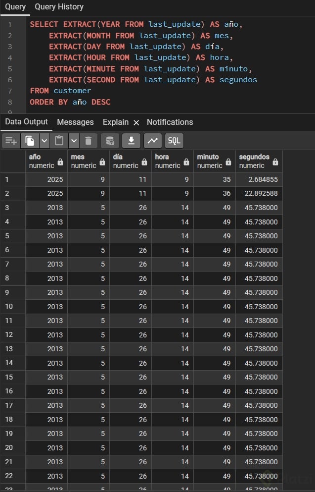 Fechas y horas en SQL: current_timestamp y función extract