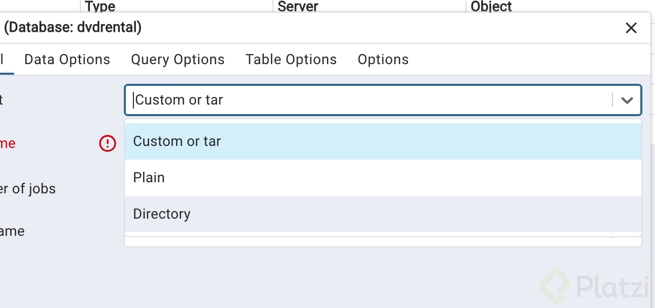 - En las opciones para restaurar, elige el archivo "DVD rental.tar". Asegúrate de habilitar la visualización de todos los archivos en caso de no verlo.