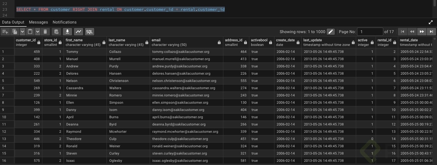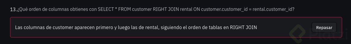 Si necesitas priorizar la segunda tabla de tu consulta, el operador right join es la opción que buscas. Sigue exactamente la misma lógica, pero esta vez es la tabla de la derecha la que prevalece en los resultados: