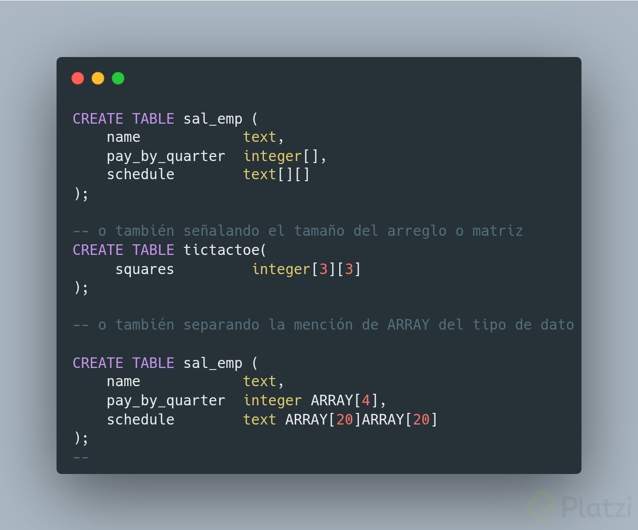 ¿Cuándo elegir arreglos o arrays en Postgres?