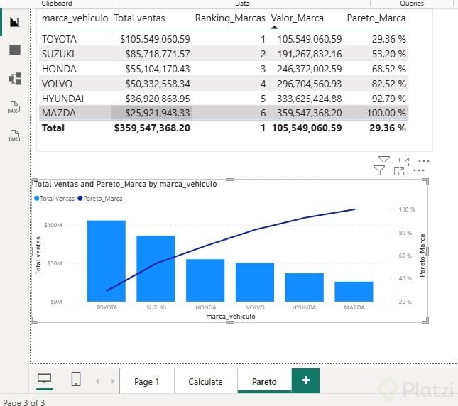 Funciones iterativas en Power BI: Creación de Pareto por marca de vehículo