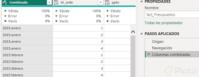 - Combinar columnas: Selecciona y combina las columnas correspondientes para crear la “fecha presupuesto”.