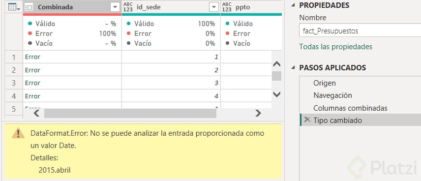 - Transformar datos: Corrige cualquier error separando mes y período.