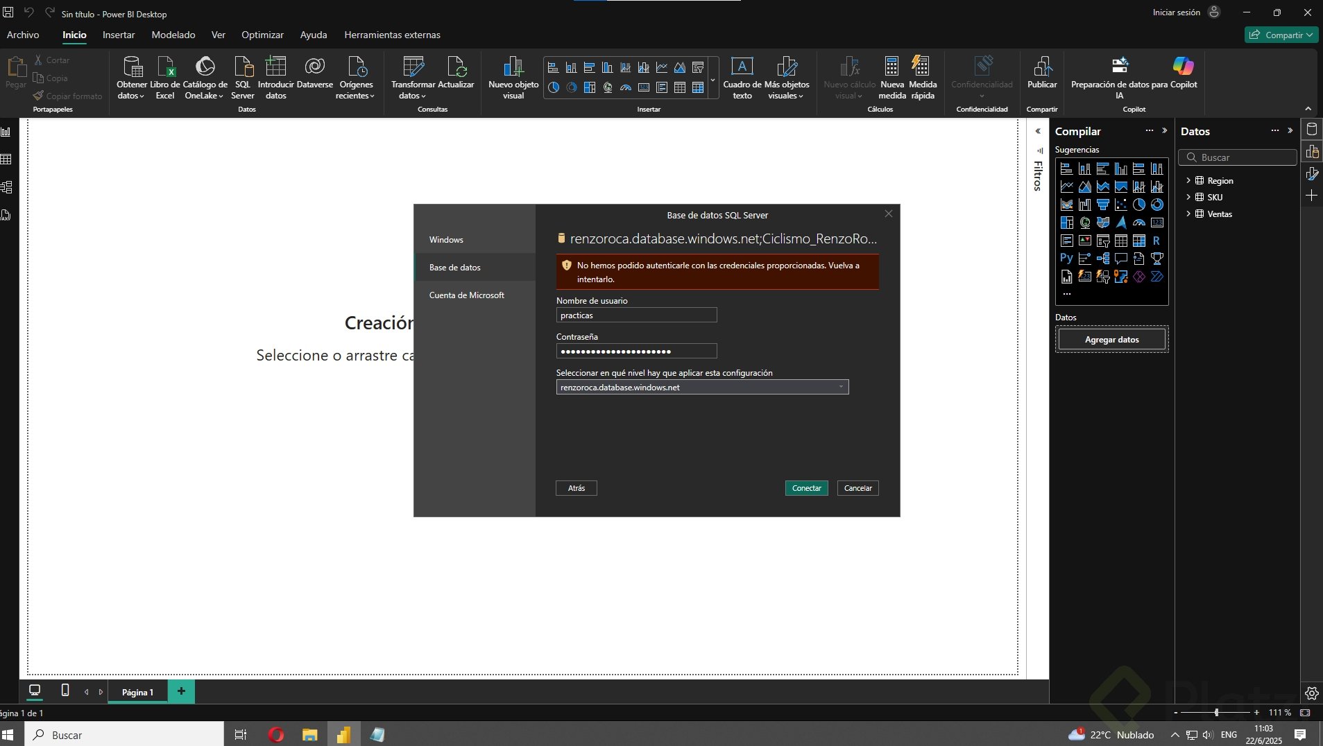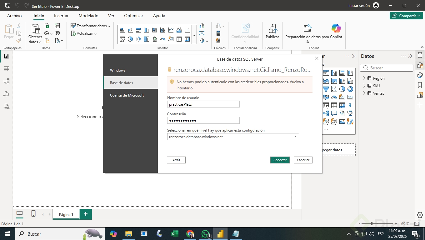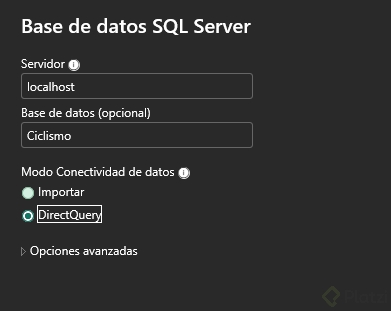 - Acceder a Obtener Datos: Selecciona bases de datos bajo SQL Server y elige DirectQuery como método.