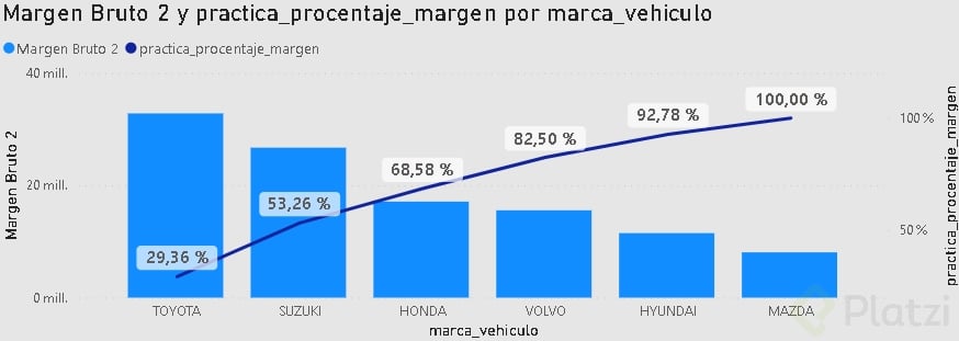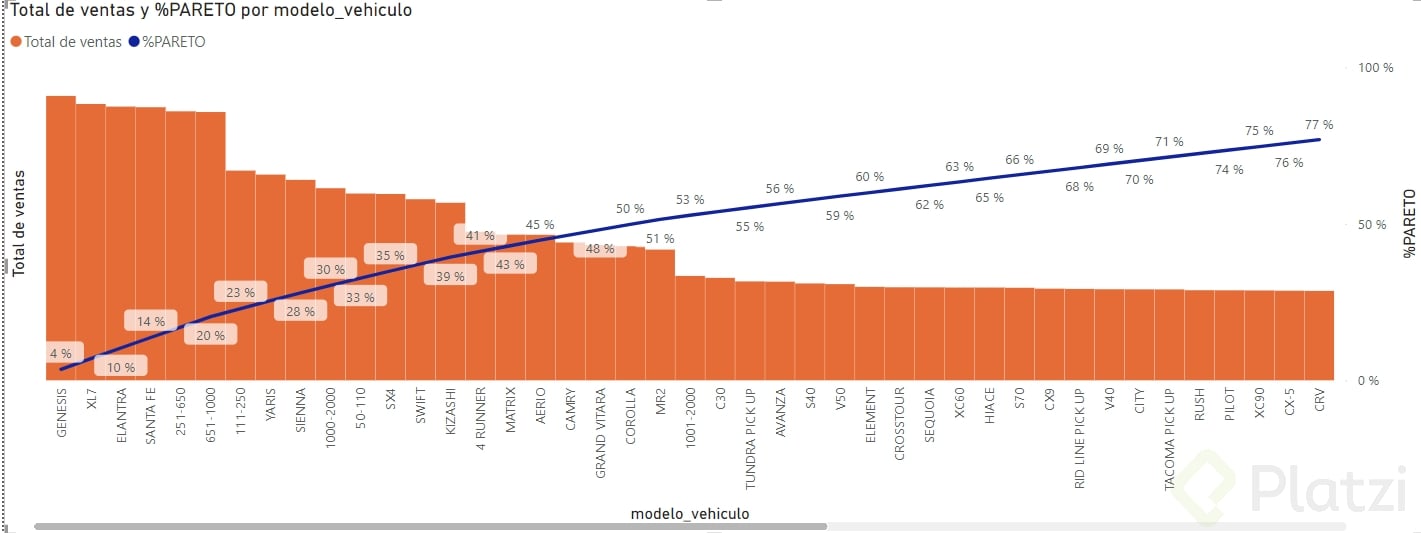- El porcentaje de Pareto se lleva al eje Y de línea.