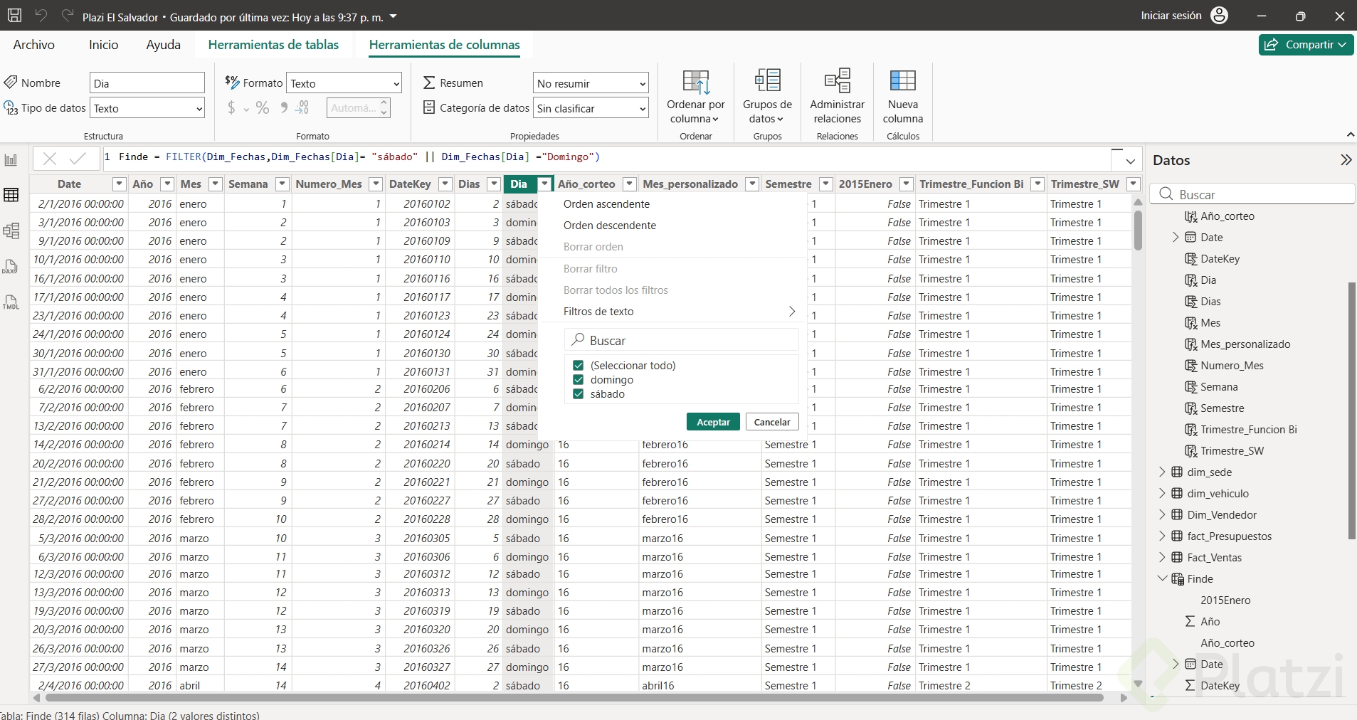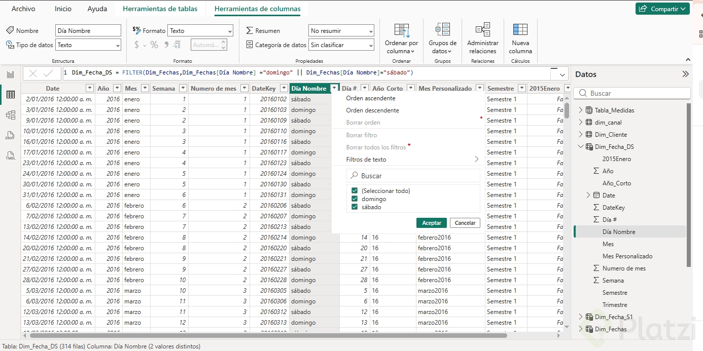 Finalmente, aquí te propongo un reto para poner en práctica estos conocimientos: Construye una tabla de fechas exclusiva para fines de semana. Con la función de filtro, determina cuándo el día de la semana es sábado o domingo. No olvides compartir tus resultados y descubrimientos en la sección de comentarios para seguir aprendiendo juntos.