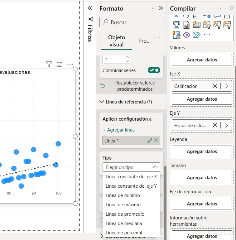 - Abre la sección de agregar más análisis al objeto visual en el panel de visualizaciones.