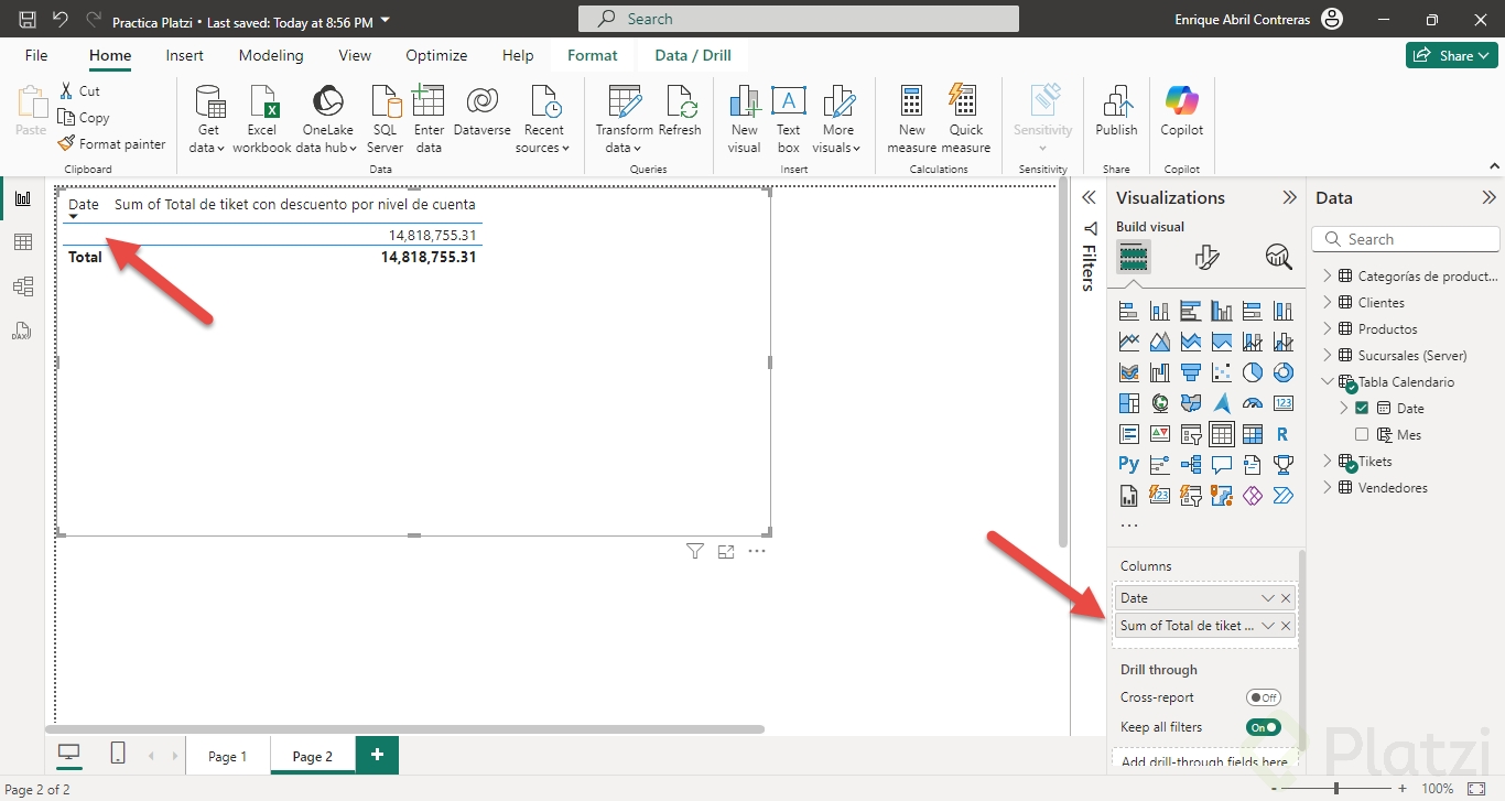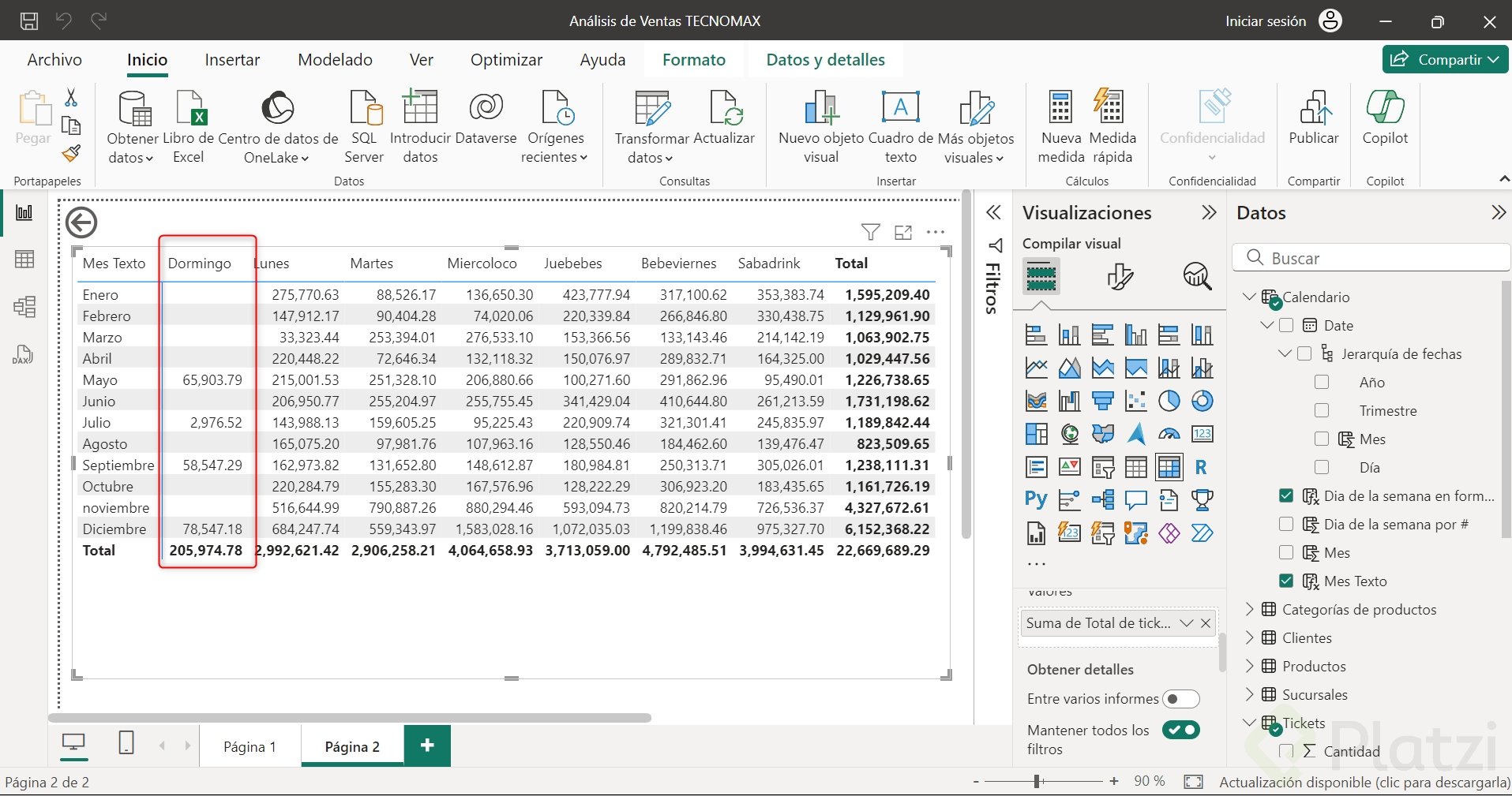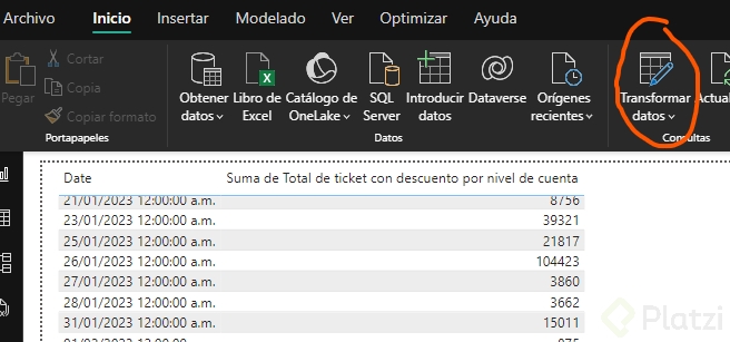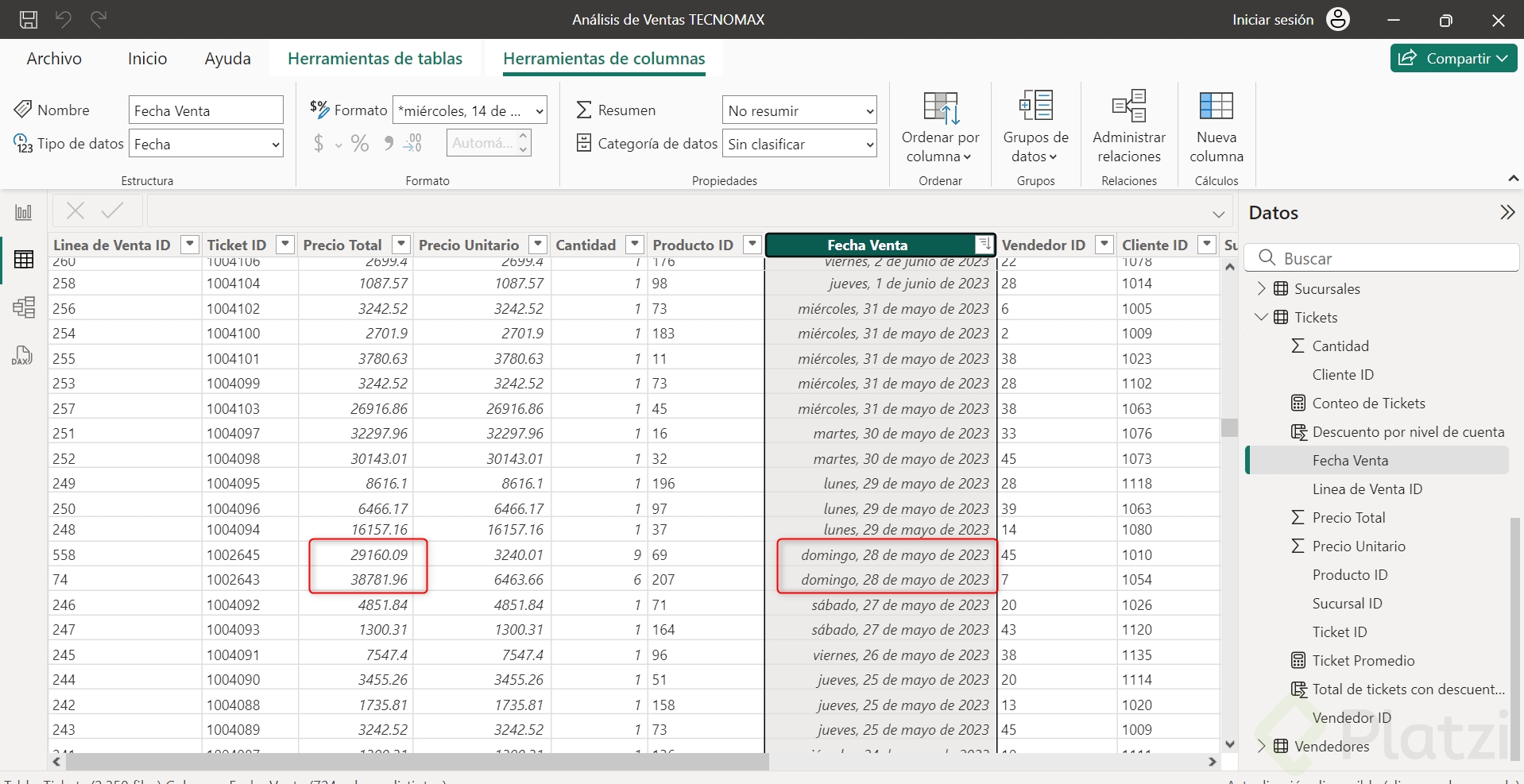 Una vez creada la tabla, Power BI asignará automáticamente un formato de fecha y hora. Para modificarlo: