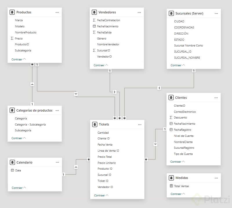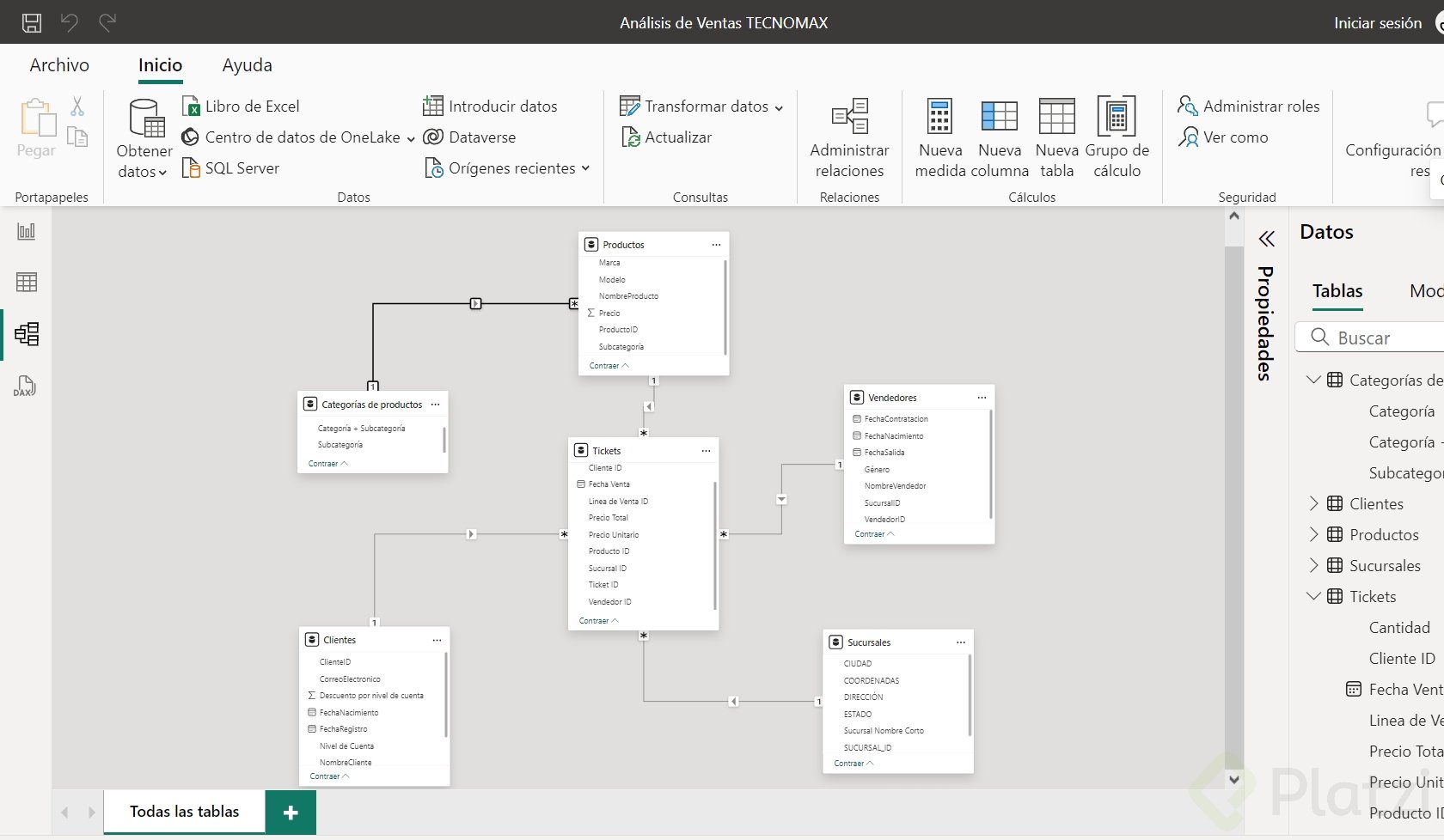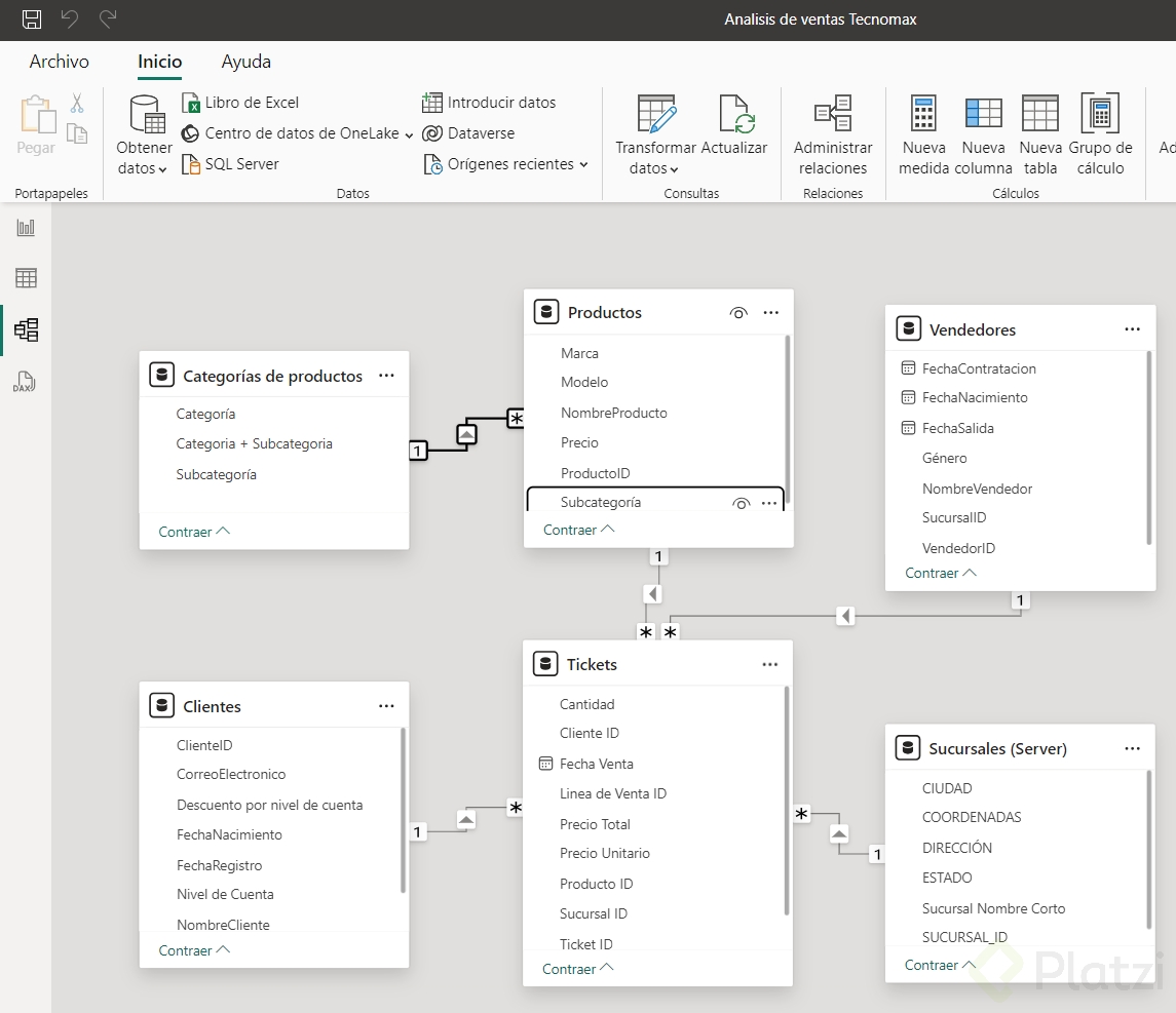 Iniciamos cargando nuestras tablas y accediendo a la vista de modelo, donde gestionaremos las relaciones entre las tablas cargadas.