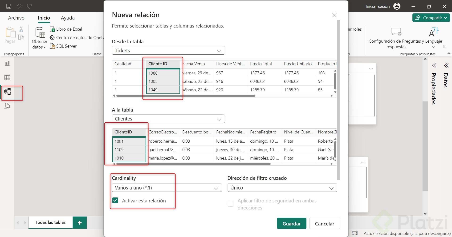 Power BI sugiere automáticamente relaciones entre tablas, pero estas pueden no ser las más adecuadas para nuestro contexto. Es mejor eliminar estas relaciones sugeridas y crear nuestras propias relaciones basadas en nuestro conocimiento específico de los datos.