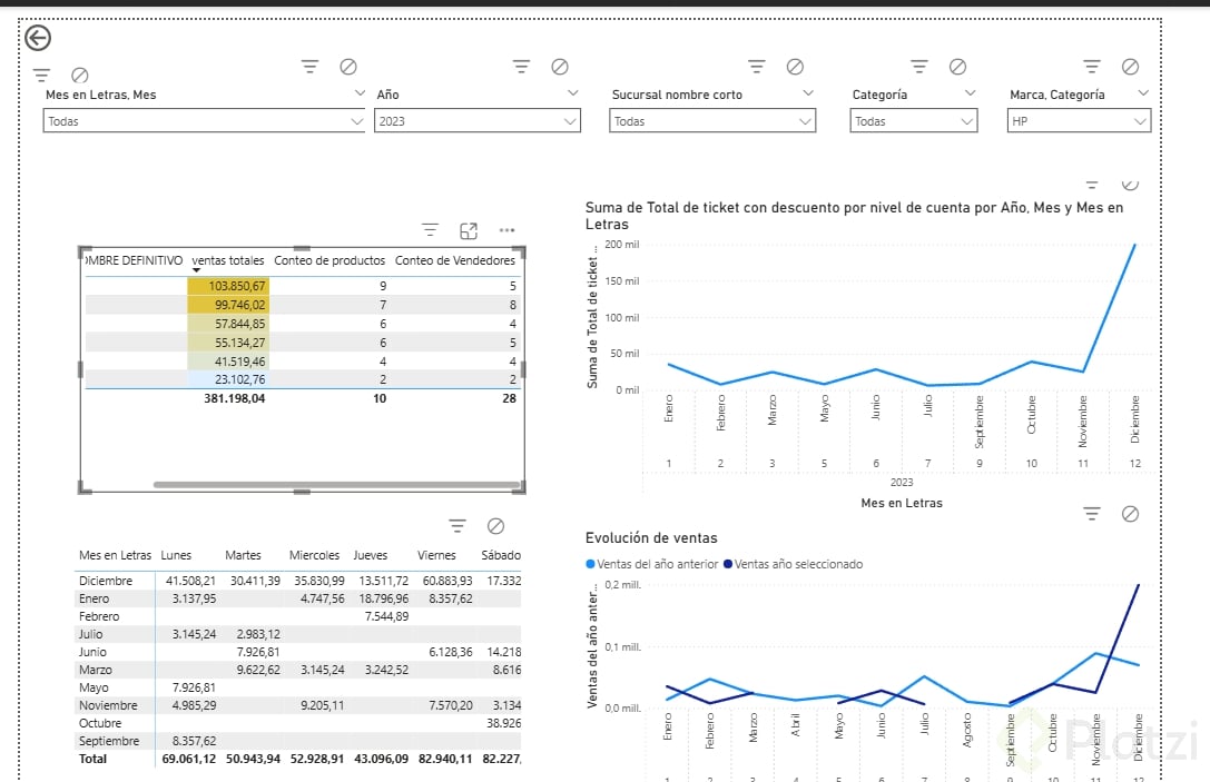 - Categoría y marca de productos: Estos filtros permiten analizar tendencias de ventas específicas por marcas o categorías, identificando cuáles son más efectivas en ciertas sucursales.