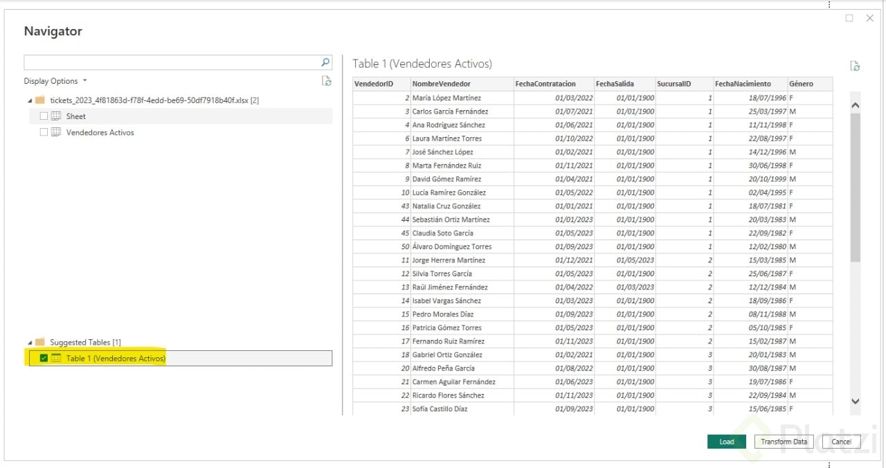 - Cargar datos: Haz clic en "Cargar". Repite este proceso para los otros dos archivos de Excel.