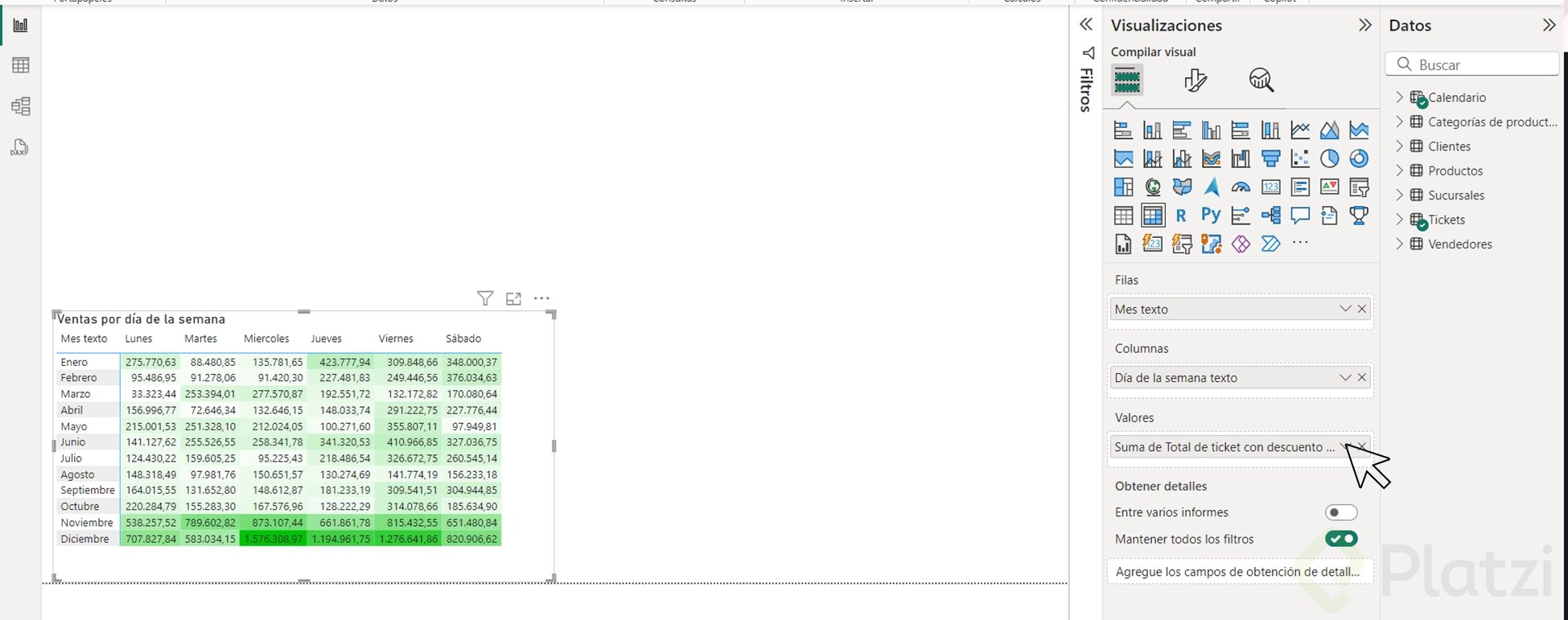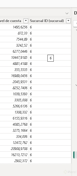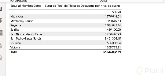Revisión visual del impacto: Cambia a la vista de informes y verifica que los valores ya no están en blanco y se asignan correctamente a sus sucursales.