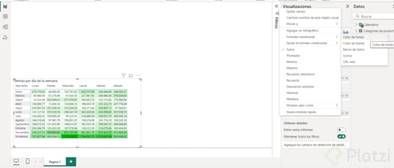 Aplicar formato de color: Asigne colores de fondo que varíen desde un color claro para las ventas bajas hasta un color oscuro para las ventas altas. Esto puede ayudar a destacar tendencias y excepciones dentro de la información.