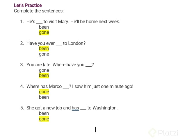 Te recomendamos practicar con estas preguntas para interiorizar la diferencia entre been to y gone to: