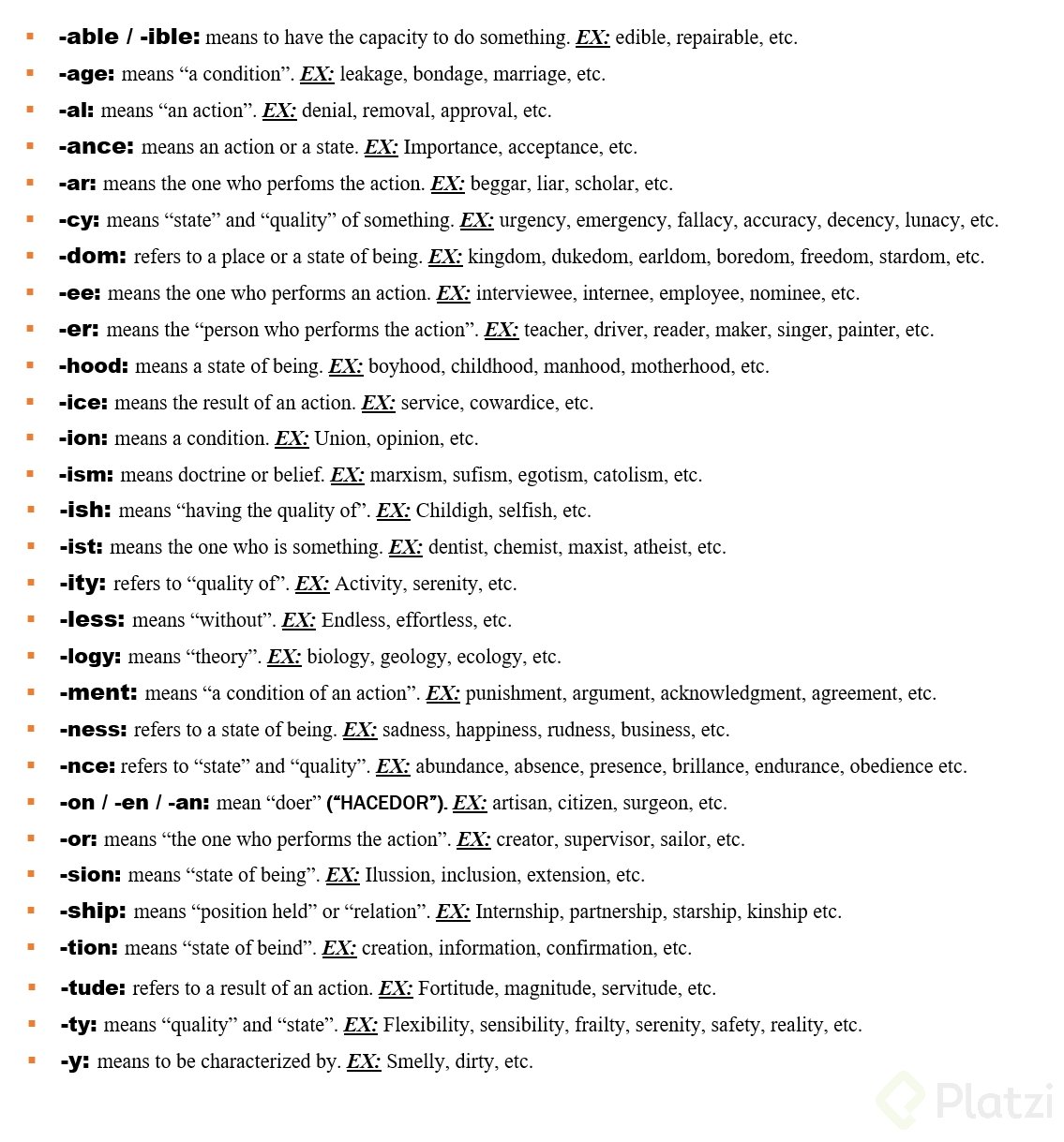 Los sufijos son combinaciones de letras que se añaden al final de las palabras para modificar su significado o función gramatical. Son una herramienta esencial en el aprendizaje del inglés, proporcionando pistas sobre el contexto y la forma en que se usan las palabras. Al dominar el uso de los sufijos, puedes mejorar tu comprensión y expresión en inglés.