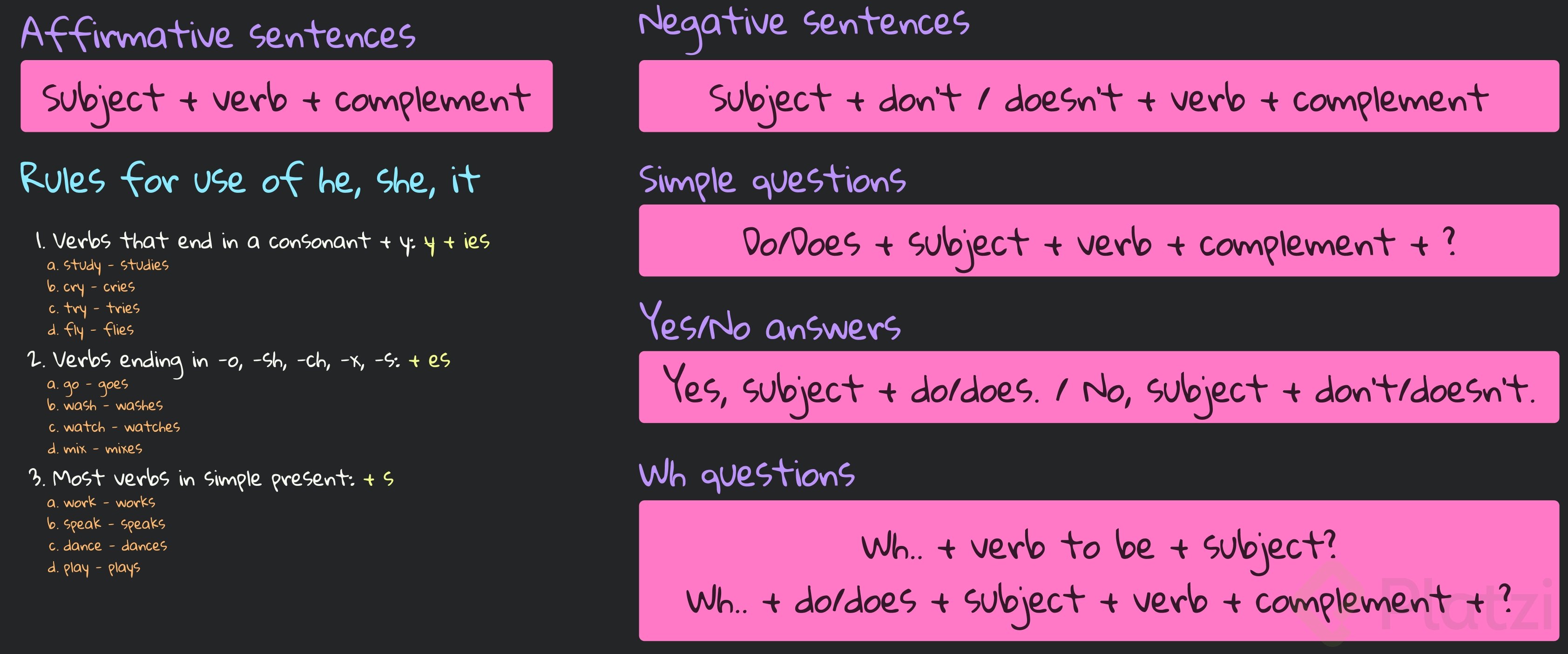Para hablar sobre nuestras actividades diarias en inglés, es importante dominar tres tipos de estructuras: