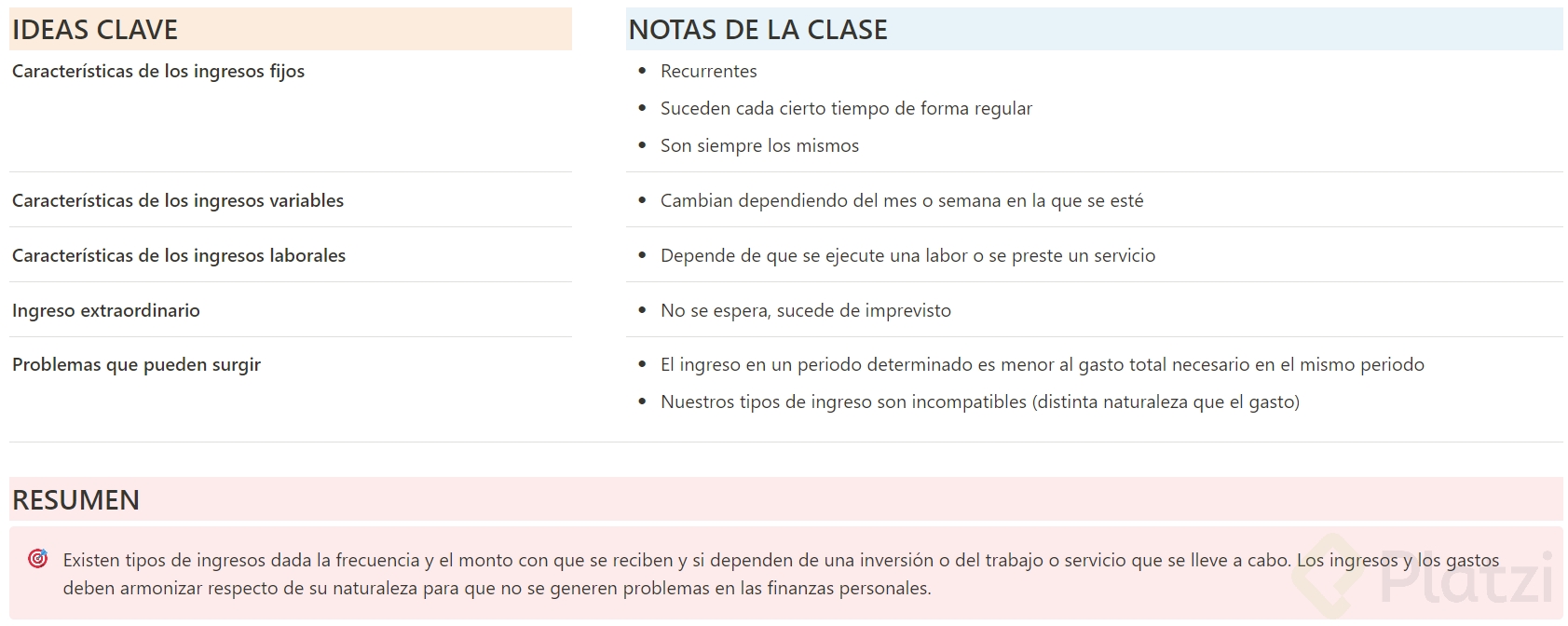 ¿Cuáles son los tipos de ingresos en finanzas personales?