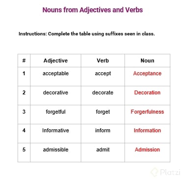 Transformar adjetivos y verbos en sustantivos es una habilidad esencial en el aprendizaje del idioma inglés que no solo enriquece tu vocabulario, sino que también mejora tu capacidad de comunicación. En esta lección, exploraremos cómo podemos hacerlo utilizando sufijos y entenderemos el papel crucial que juegan en la creación de nuevas palabras.
