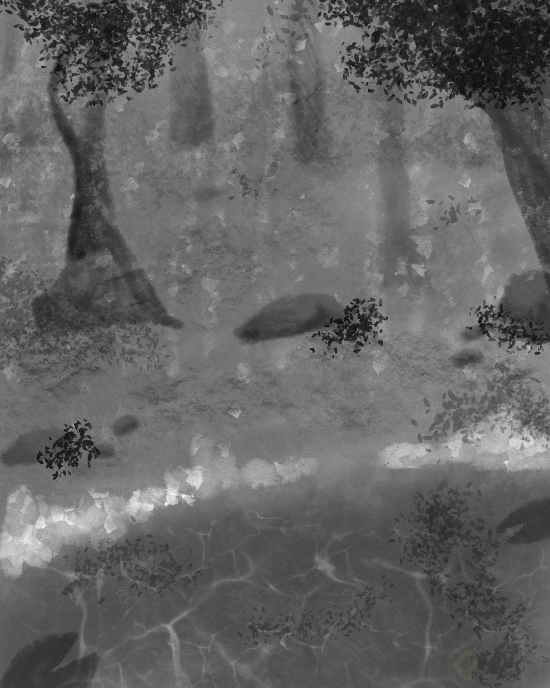Emplear distintos valores de grises es una técnica efectiva para crear la ilusión de profundidad y atmósfera. Por ejemplo: