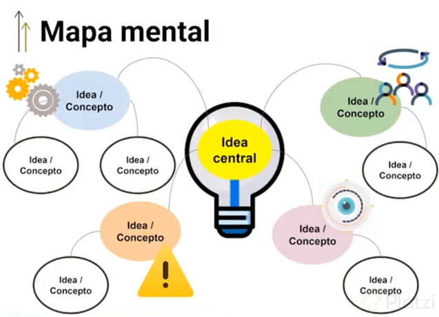 Los mapas mentales abstraen a través de las ideas principales de manera grafica y simple las esencias de lo que queramos transmitir