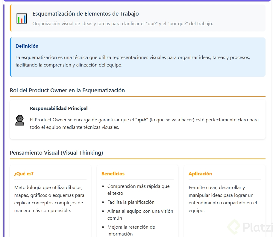 💡 Pensar con imágenes ayuda a entender más rápido y a que todos estén en la misma página para poder crear, desarrollar y manipular las ideas para llevarnos a un buen entendimiento.