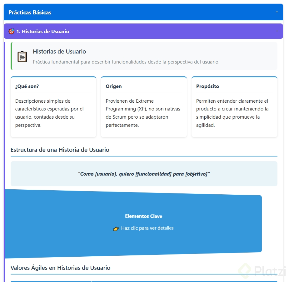 Prácticas básicas1Historias de usuario05:102Esquematización de elementos de trabajo05:143Descomposición04:114Prototipado como medio de especificación04:32