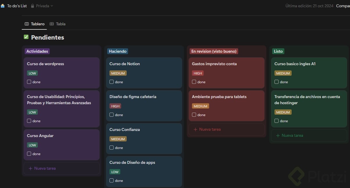La flexibilidad de Notion permite personalizar cada elemento según las necesidades específicas de tu empresa, facilitando la creación de un sistema de gestión integral y eficiente.