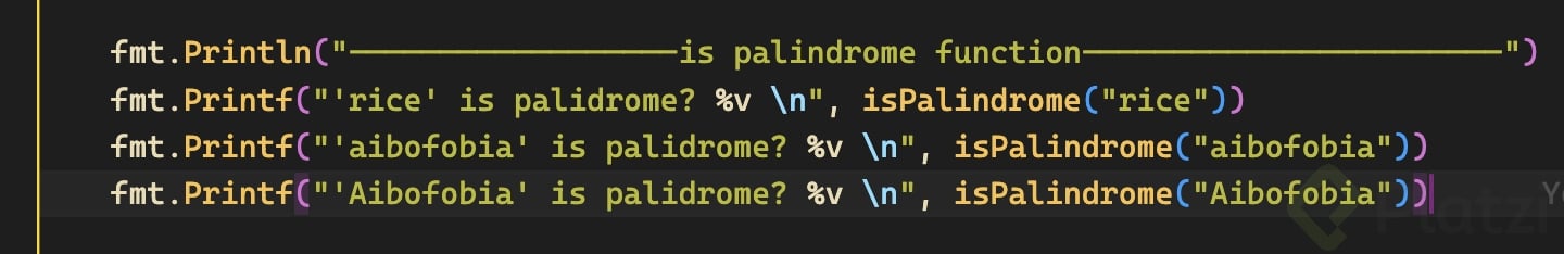El siguiente ejemplo ilustra cómo implementar una función para verificar si una palabra es un palíndromo: