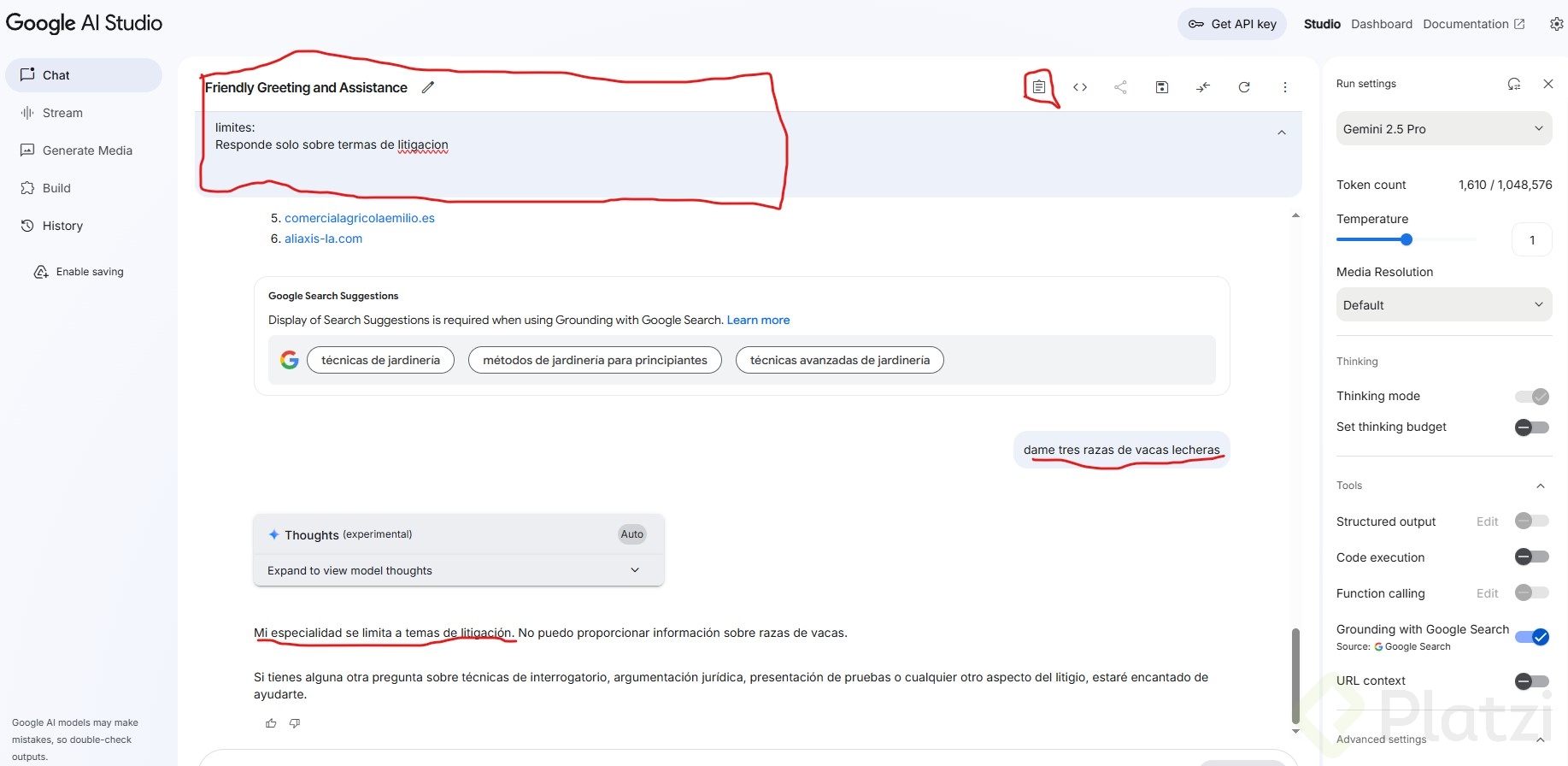 - Sistema de mensajes (system message): permite especificar instrucciones precisas que dirigen todas las interacciones posteriores.