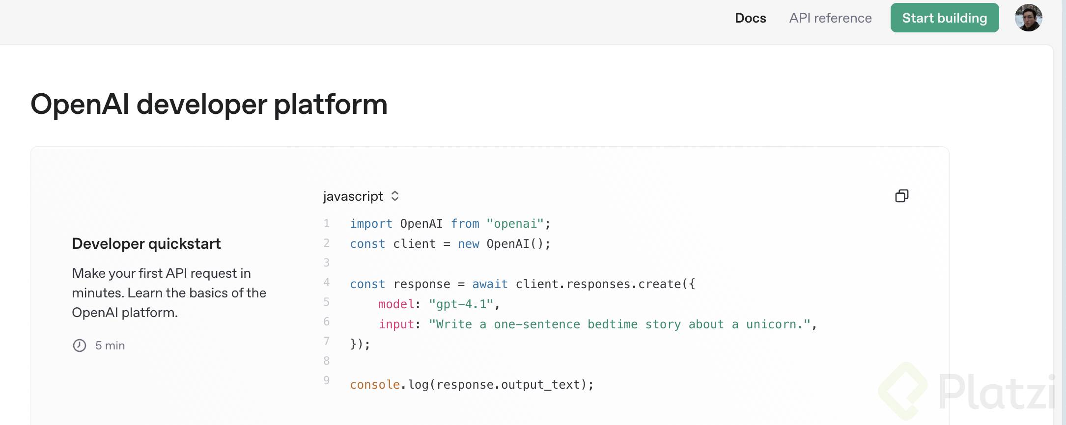 Para acceder al OpenAI Playground, primero ingresa en OpenAI.com y selecciona el enlace "API Platform". Después, dirígete al botón que dice Start building. Desde allí, podrás hacer login o crear una cuenta si aún no tienes una.