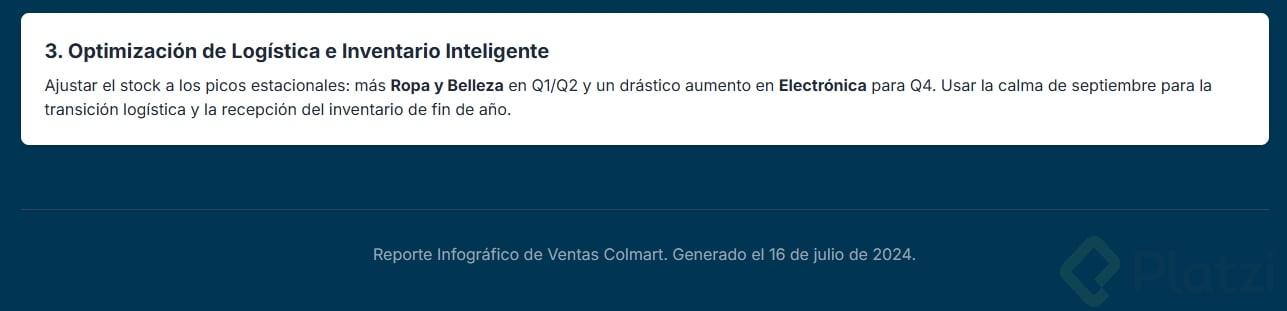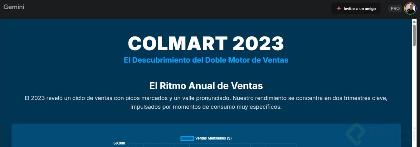 Generado el análisis de datos, utiliza otro rol, como “gerente de ventas”, para preparar un reporte ejecutivo claro que incluya: