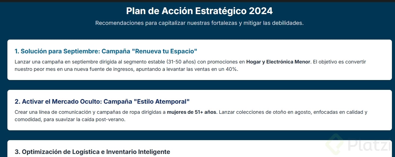 Una vez definido el archivo y revisado su contenido, elabora un plan de análisis concreto con reportes específicos. En el ejemplo: